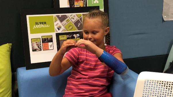 Раньше у Кати был тяговый протез, к новому ей ещё нужно привыкнуть. Сначала наш инженер Игорь объяснил маме Кати, как одеть гаджет и как его настроить. Потом они тренировались на предметах разной формы и прочности, отдыхали и снова тренировались. А в конце Катя уже держала хрупкий пластмассовый стаканчик.