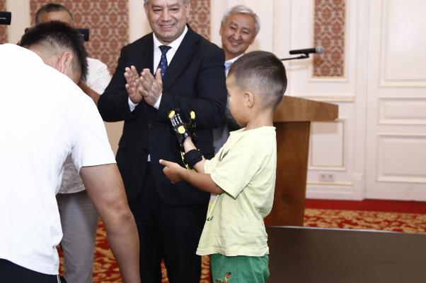 «Сегодняшняя церемония – особый случай. Мы собрались здесь не просто для того, чтобы передать детям современные протезы рук, мы собрались здесь, чтобы сообщить им, что самое главное – государство всегда рядом, что никто не останется без внимания, заботы и поддержки»,— подчеркнул Министр труда, социального обеспечения и миграции Кыргызской Республики Сабиров Равшанбек Азатович.